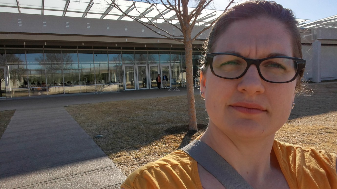 Photo: Selfie with Piano Pavilion. Note: no coat on Jan. 30!